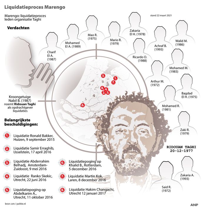 Youssef Taghi de volle neef van Ridouan Taghi die volgens het OM werd ingeschakeld om een gewelddadige ontsnappingspoging voor te bereiden vanuit de EBI. Advocaat Khalid Kasem lekte informatie naar Ridouan Taghi Advocaat Khalid Kasem heeft volgens de politie en het Openbaar Ministerie OM in 2015 informatie uit een lopend strafonderzoek gelekt. Advocaat van Ridouan Taghi ook bij ons bekend door Aquinoproces.